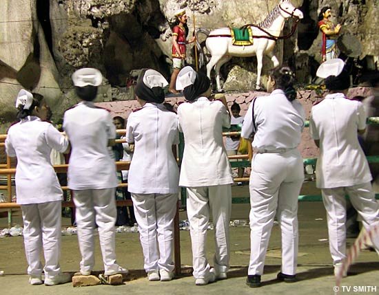 A Bevy Of Nurses. Volunteers and personnel from the Red Crescent Society on stand-by. No, I didn't ask one of them to stand on the bricks :) Exposure setting: ISO 200, f2.5, 1/8 sec