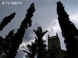 striking yet lonesome church appeared. Just like a scene from a Tim Burton movie.