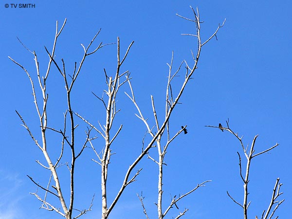 The Mirage. Cloudless sky, dead trees and a couple of lonely birds conjured up a desert-like image. Exposure setting: ISO 160, f6.3, 1/400 sec